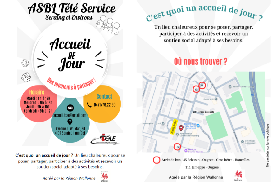 - Contactez l’accueil de jour : 0471/76.22.60